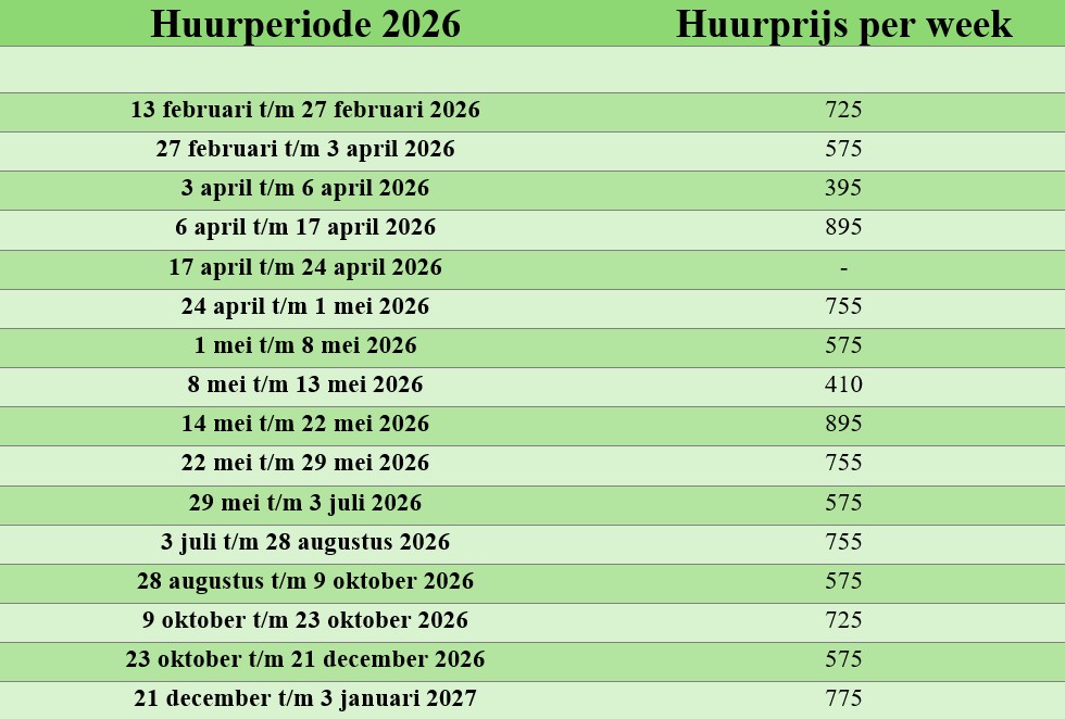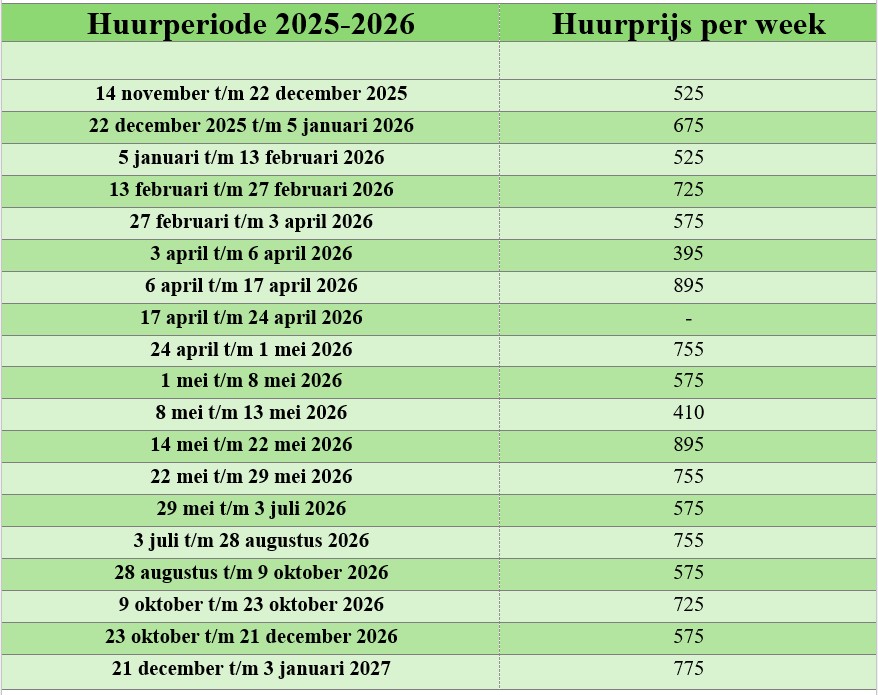 Ons vakantiehuis is te huren van vrijdag t/m vrijdag.